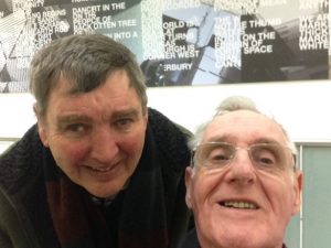 In the early years of our respective careers at Robert Brett and Sons we witnessed old retired Brett employee’s who congregated on a bench in Wincheap. No woman or bloke for that matter was safe from their banter. We would joke ‘that will be us one day’ but the bench disappeared so it never happened. Add MND into the mix and for the last six months Eric has organised our jaunts on a weekly basis. Now we are those old men but we’re mobile and causing confusion and havoc everywhere we go. Yesterday, because of the Mini Beast from the East we stayed local to visit the exhibition of illustrations of Roald Dahl’s books at the Beaney in Canterbury.