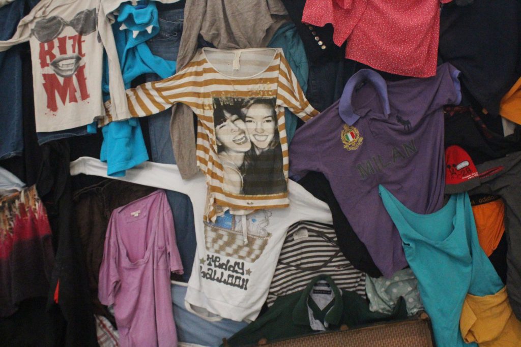 On this second visit I spent time looking deeper into the sculpture and its revealing content. A baby’s bootie, a child’s trainer, a little girl’s glittery dancing shoe and endless frivolous t-shirts all every day trappings we take for granted. Found on the shores of Lesbos you hope their owners survived the waves and their respective onward journeys. Part of the installation is an interactive wall, where you are encouraged to touch the clothes and contemplate their previous owner’s future; a Disney hat, teddy balloon t-shirt, fun pieces of clothing caught up in a human tragedy.